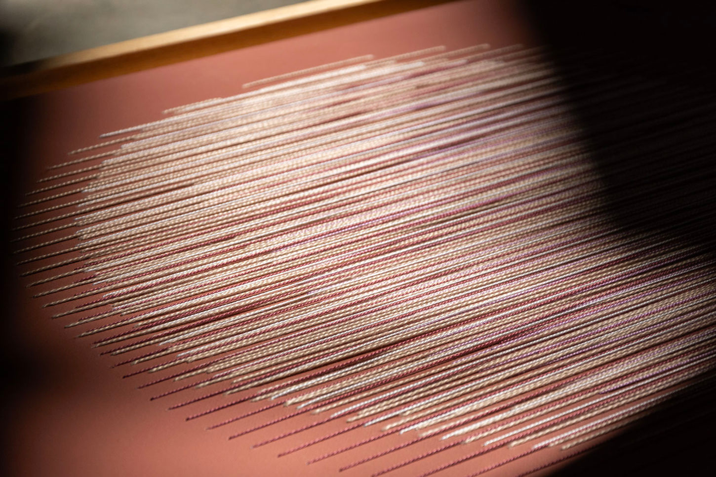 Eclipse : œuvre textile sur toile en coton sur châssis - Fils de coton et peinture acrylique - 52 x 62 cm
